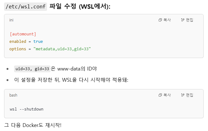 - WSL과 Docker 볼륨 연결 개념을 정확히 이해하게 됐고